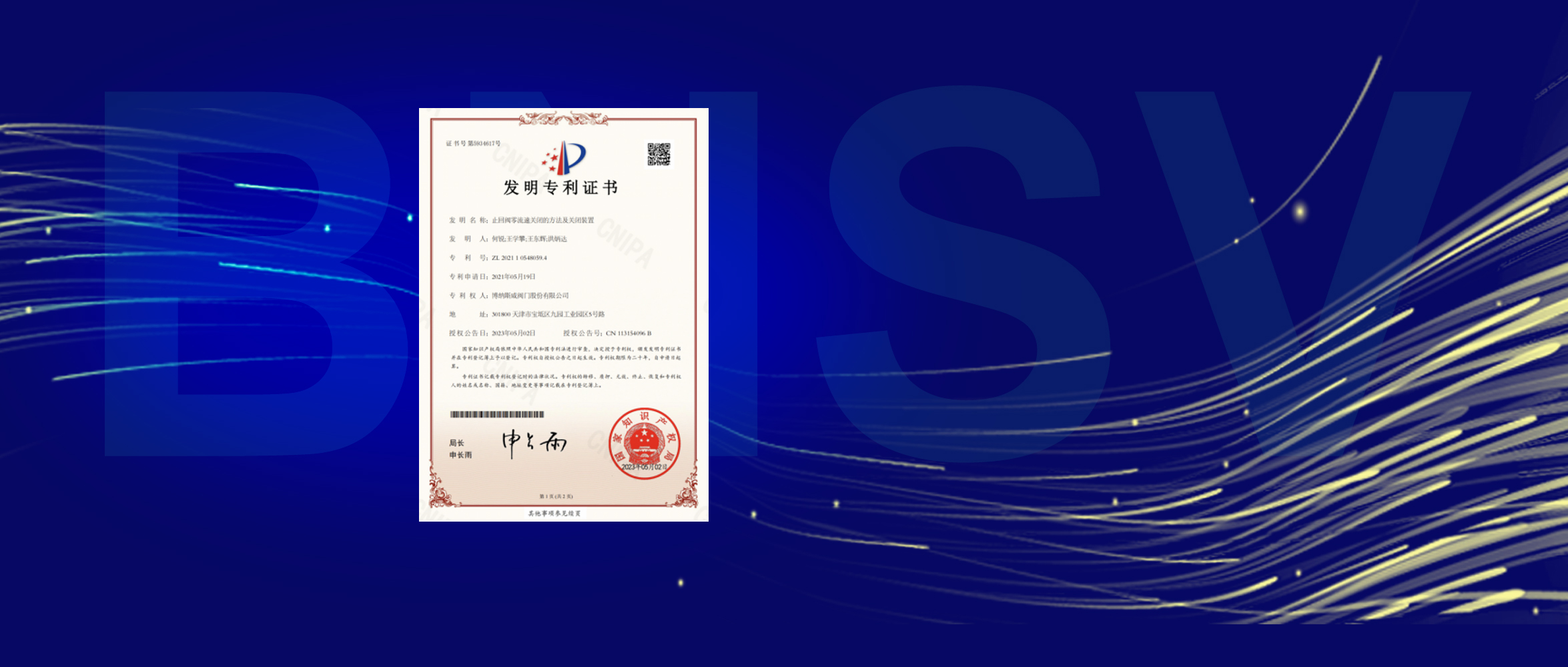 博納斯威閥門股份有限公司持續(xù)創(chuàng)新,2023年5月2日,博納斯威原創(chuàng)新技術(shù)“止回閥零流速關(guān)閉的方法及裝置”獲得國家知識產(chǎn)權(quán)局授權(quán)發(fā)明專利。迄今為止,博納斯威獲得專利總數(shù)量達到250項,其中發(fā)明專利16項,實用新型專利171項,外觀專利63項,成為專利高產(chǎn)閥門企業(yè)。