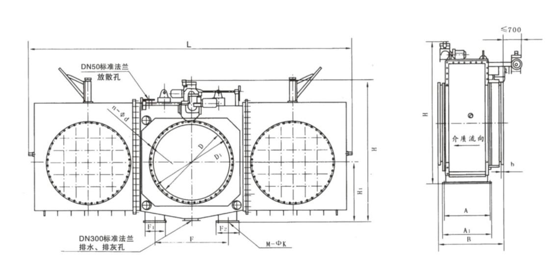 由主副閥體、閥板、伸縮節(jié)、固定套、電液推桿夾緊機(jī)構(gòu)、行走電裝、限位器、左、右側(cè)閥體等部件組成。關(guān)閥:電液推桿驅(qū)動(dòng)彈簧夾緊機(jī)構(gòu),使閥板脫開,到位后,行走電裝啟動(dòng),驅(qū)動(dòng)閥板行走由開到關(guān),到位后,電液推桿反向運(yùn)動(dòng),彈簧夾緊機(jī)構(gòu)自動(dòng)夾緊到位,關(guān)閥結(jié)束。開閥則反之。